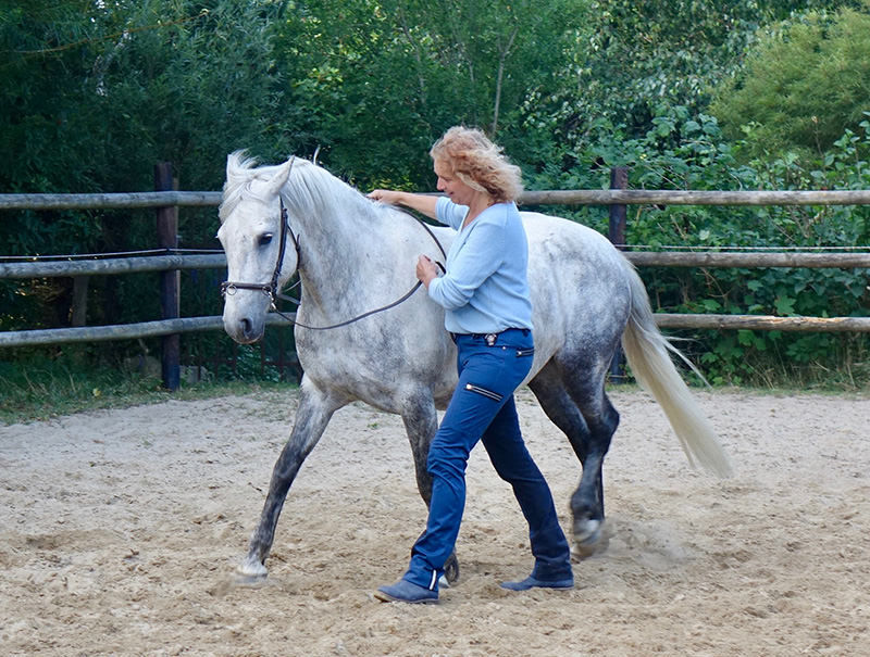 Das Pferd steht bei uns im Mittelpunkt. Wir achten auf seine körperliche und mentale Balance und erinnern es mit feiner, achtsamer Körpersprache an seine Natur. So findet es heraus aus der Trageschwäche, entwickelt Kraft, Selbstbewusstsein und Gelassenheit. Durch gymnastizierende Ausbildung entsteht ein gesunder, tragfähiger Körper, in dem ein klarer Geist präsent sein kann.